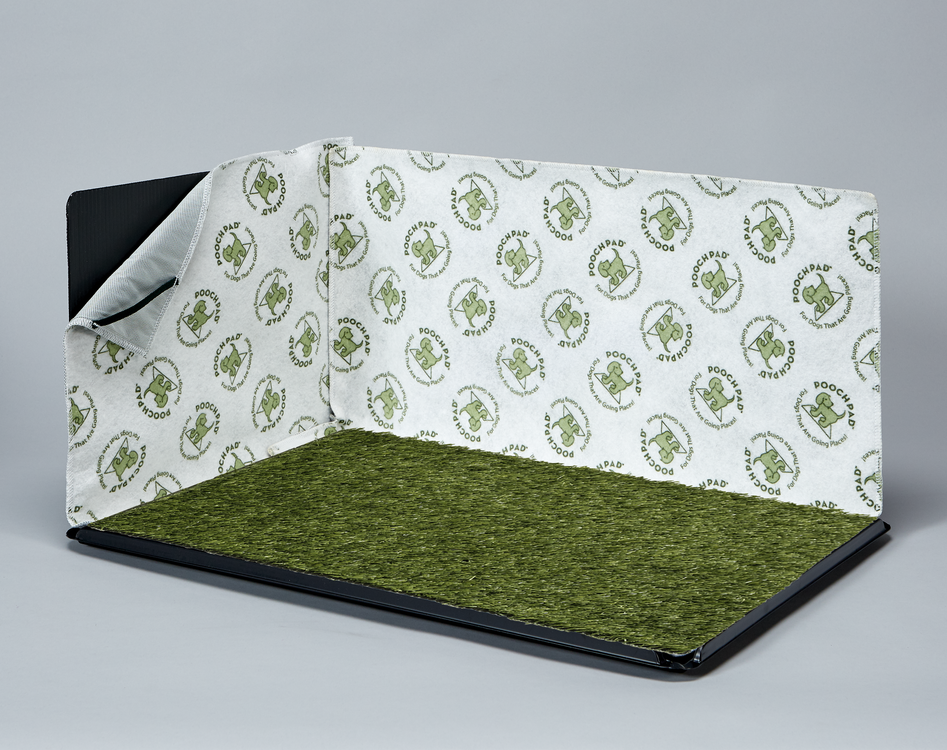 • To help train your dog, use a small amount of PoochPad® Potty Training Attractant Spray (sold separately) or dab a small amount of your dog’s pee in the center of the PoochTurf®.